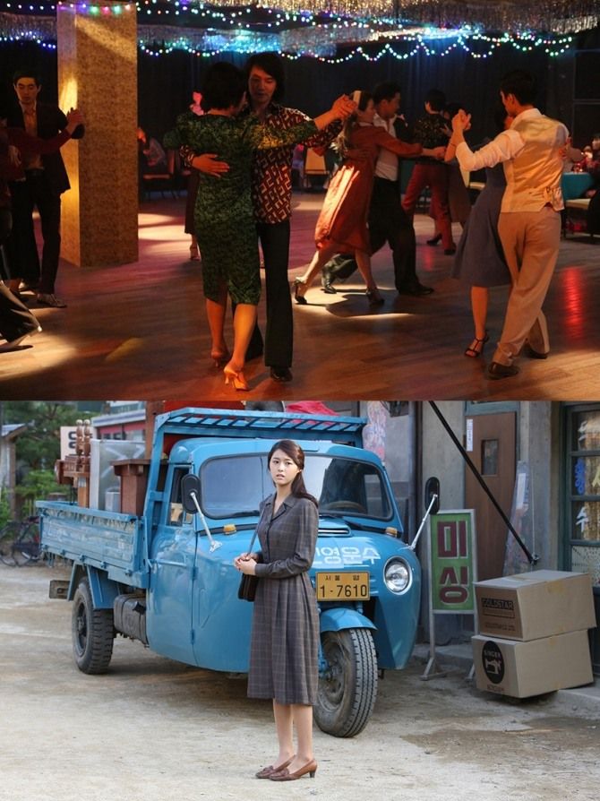 Los ajustes y estilos de moda en las fotografías captan la atmósfera de la década de 1970 en el distrito de Gangnam.